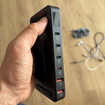 Very nice and small footprint, the only complain is that the rubber feet are a pain since the charger will not stay still when you connect and disconnect cables.
