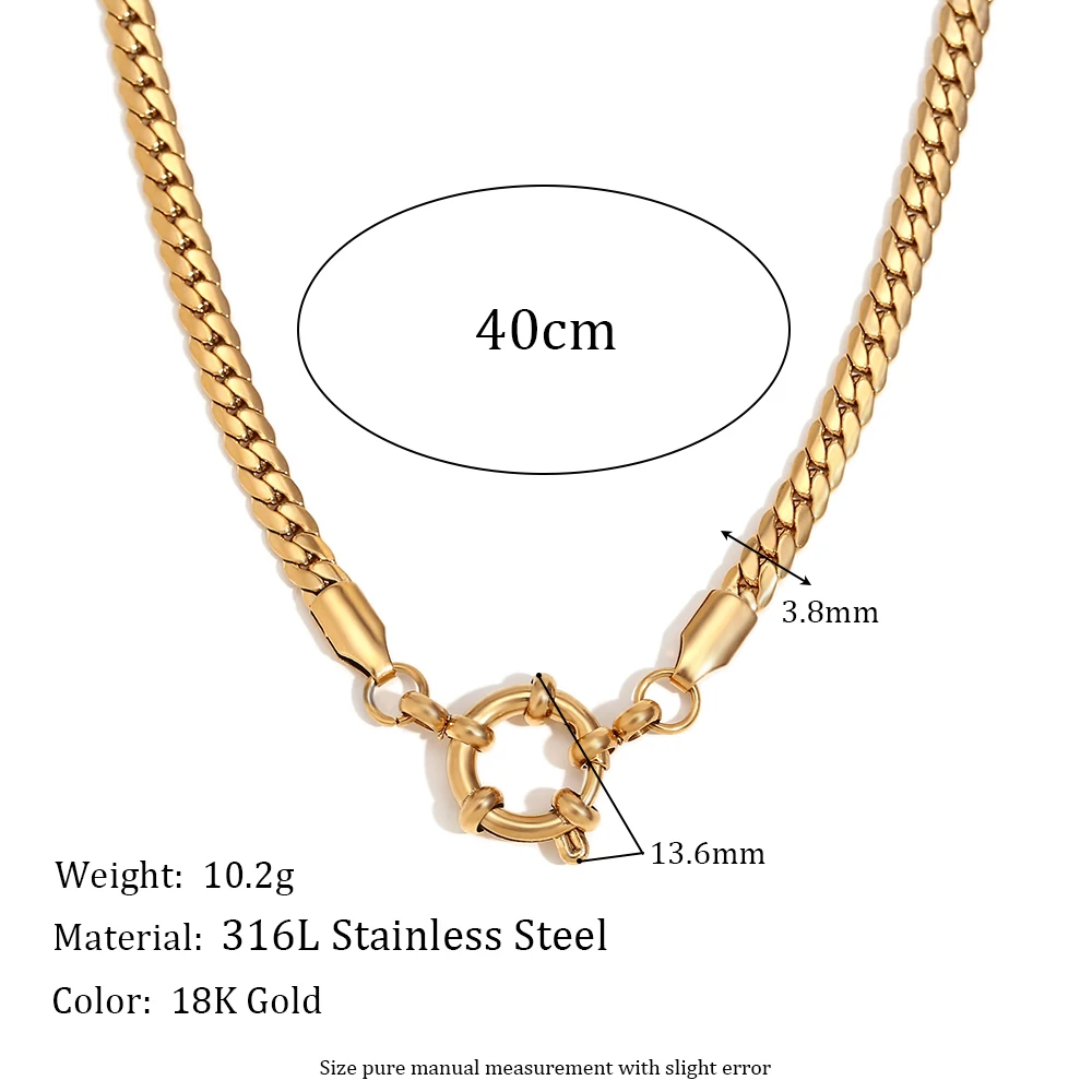 This necklace is designed with durability in mind, thanks to its tarnish-free finish and hypoallergenic materials. Its unique chain style, combining blade and paper clip links, adds a distinctive edge while the O-shaped chain and spring buckle pendant complete the look with a modern twist. This blend of elegance and innovation makes it perfect for any style-conscious individual.