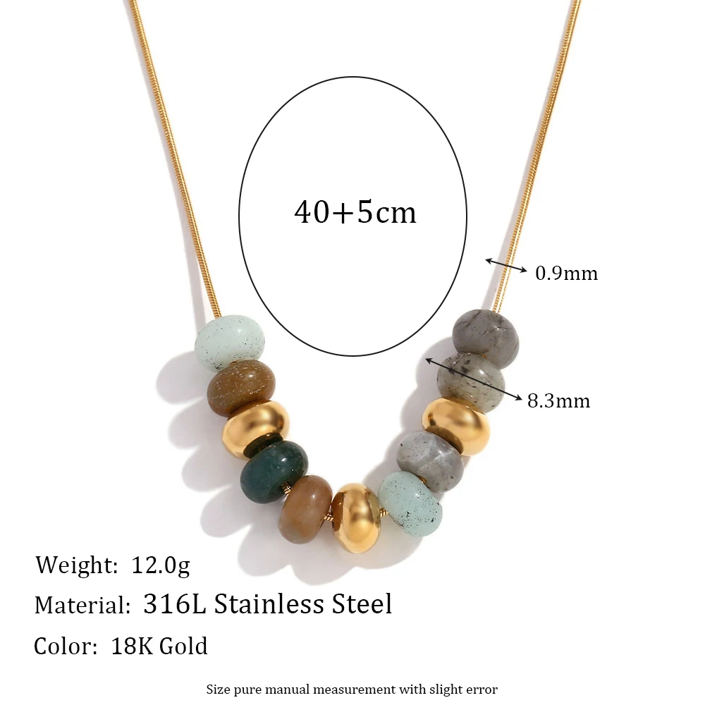 Experience the blend of natural beauty and modern elegance with our 18K Gold Plated Snake Chain Necklace, adorned with stunning natural stone beads. Crafted with premium 316L stainless steel, this choker-style necklace adds a delicate yet bold statement to any outfit. Perfect for both casual and formal occasions, its high-quality materials and thoughtful design make it a piece you’ll reach for time and again.
