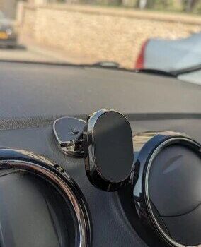 This mount boasts a sleek, low-profile design and is constructed from metal for durability. Its strong magnet securely holds the phone in place, and it can be easily retracted when not in use. While the adhesive it comes with may not be the strongest, it includes additional stick pads for convenience. Overall, it's a well-designed and functional product.