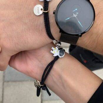 This bracelet stands out with its unique astronaut and star-themed design, symbolizing adventure and dreams. It’s more than a fashion statement; it’s a personal expression of love and shared dreams. Suitable for both men and women, it’s a way to stay connected no matter the distance.