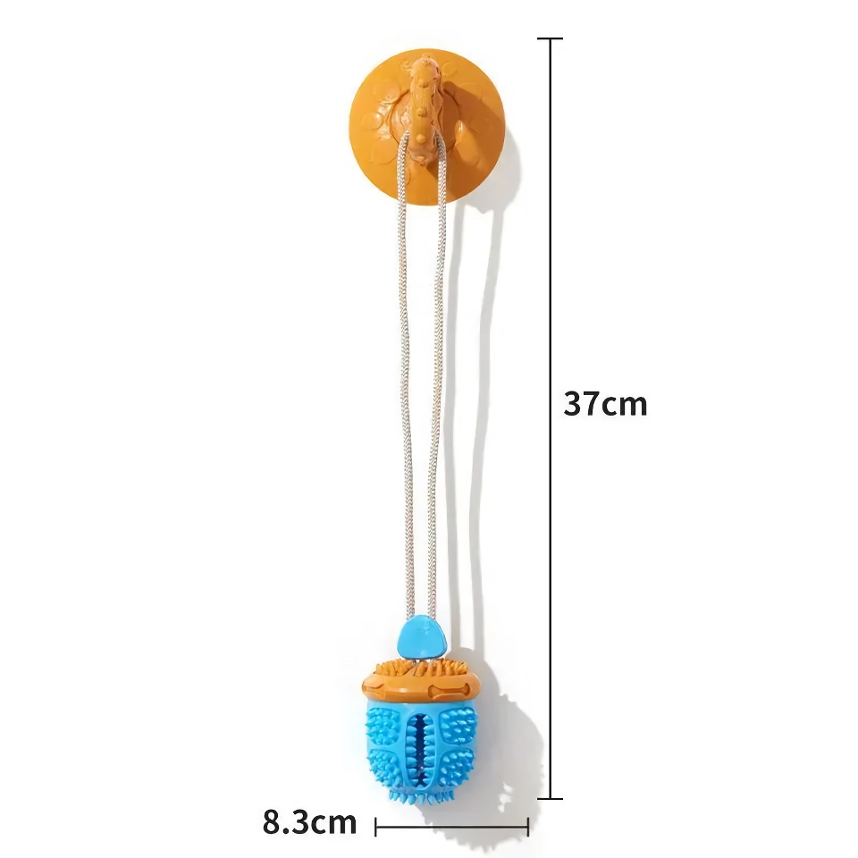 Transform playtime with this highly durable suction cup dog toy designed for pets who love to tug, pull, and chew. Featuring a strong suction base that stays firmly in place on any smooth surface, this toy encourages active play while promoting healthy teeth and gums. With a built-in treat dispenser, it keeps your dog engaged and happy, as they work to release their favorite treats. Made from safe, non-toxic fleece, this toy offers endless hours of fun, ensuring your dog stays entertained and mentally stimulated while cleaning their teeth naturally.