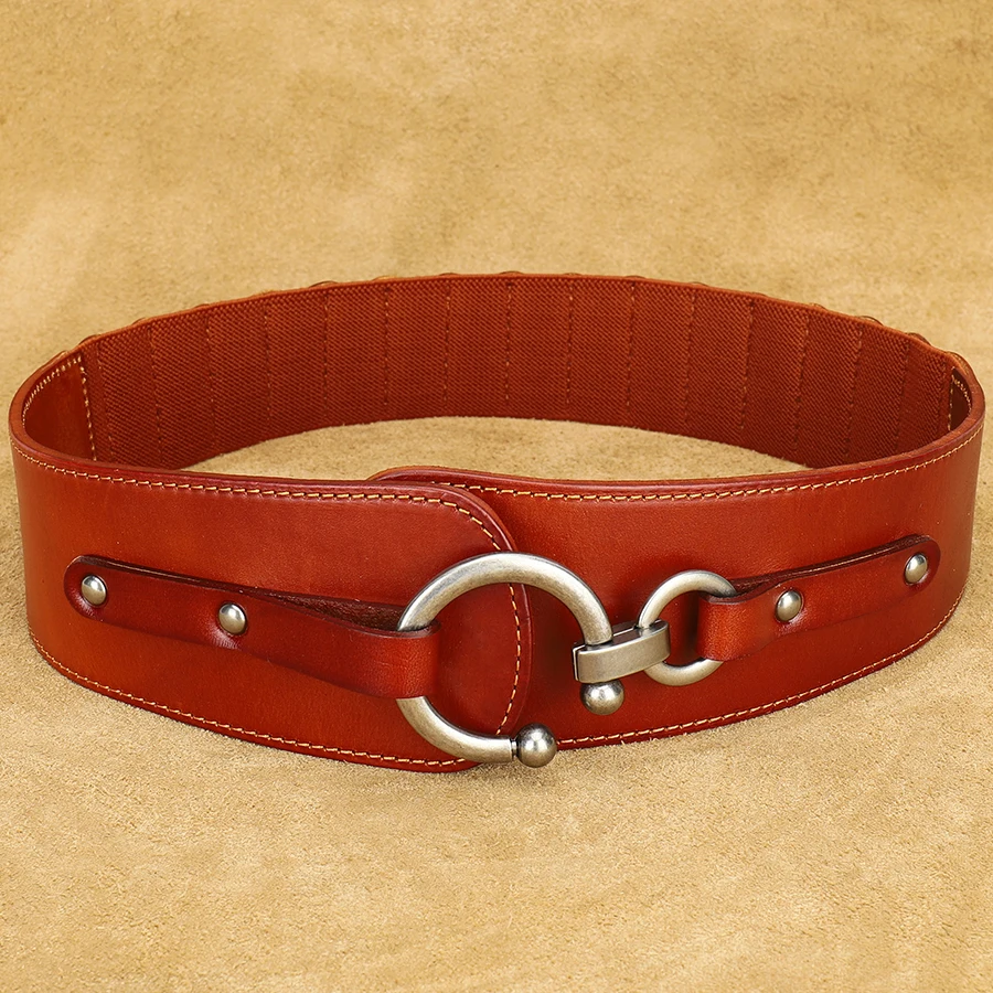 Genuine Leather Vintage Wide Elastic Belt for Women