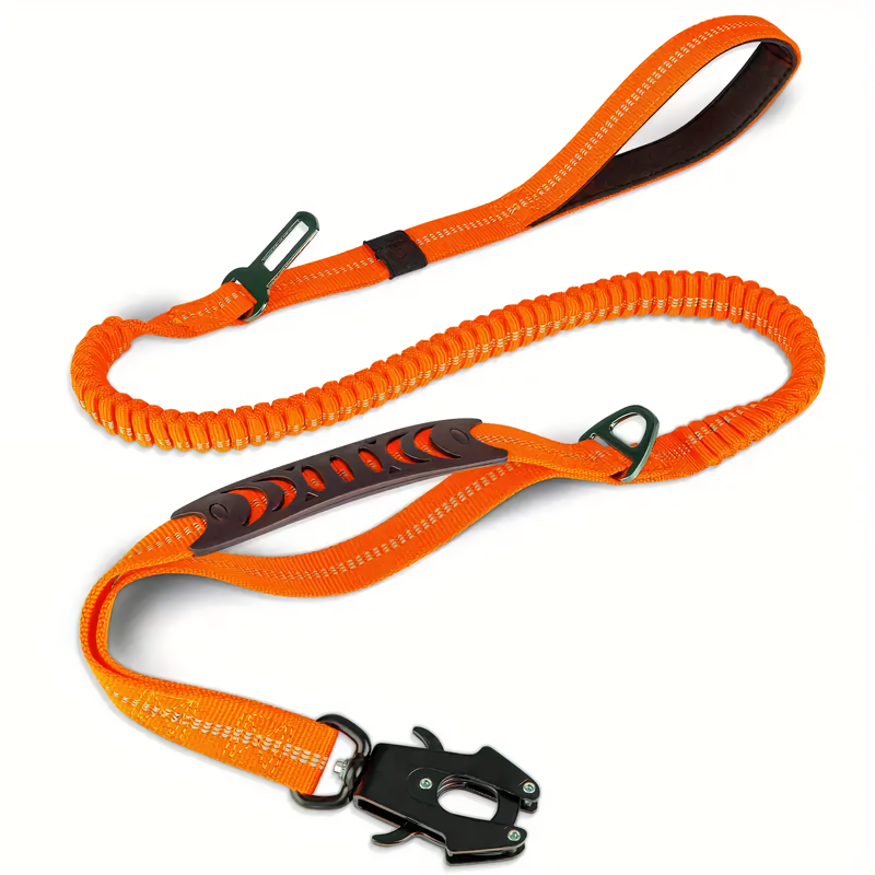 If you have a large dog that loves to pull or get excited during walks, the Heavy Duty Tactical Bungee Dog Leash is the perfect solution. The leash’s bungee cord stretches to absorb any sudden pulls, reducing strain on both your dog and your arm. The adjustable handles give you greater control, whether you’re on a leisurely walk or navigating through a busy street. Plus, the quick-release carabiner and seatbelt attachment make it an ideal choice for safe travel, ensuring your dog remains calm and secure during car rides.
