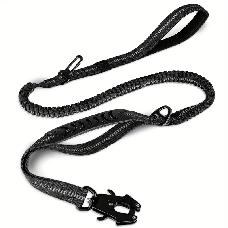 Whether you’re walking, training, or traveling with your dog, the Heavy Duty Tactical Bungee Dog Leash is the ultimate accessory for large breeds. Its shock-absorbing design reduces sudden jarring movements, while the multiple handle options give you complete control in any situation. The reflective features ensure safety during night walks, and the added seatbelt function makes car rides with your dog more secure and stress-free.