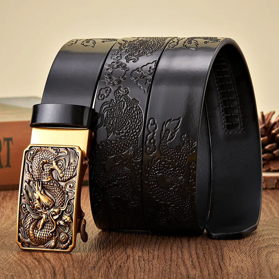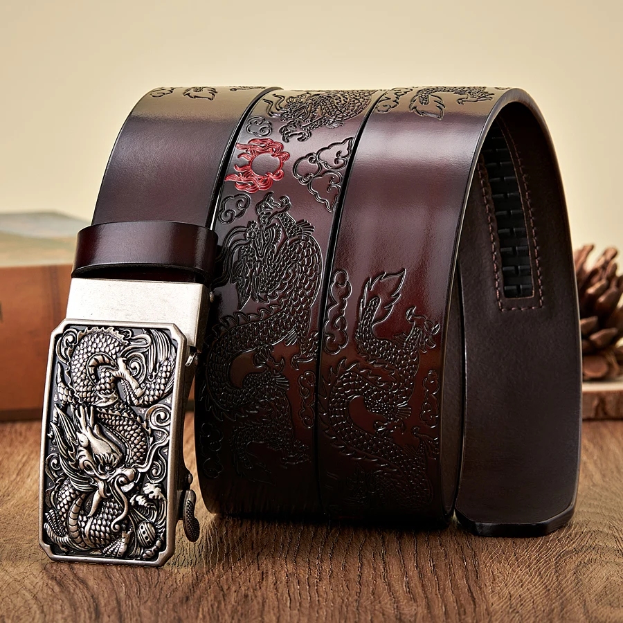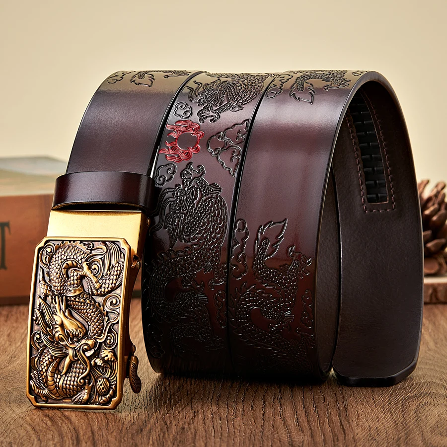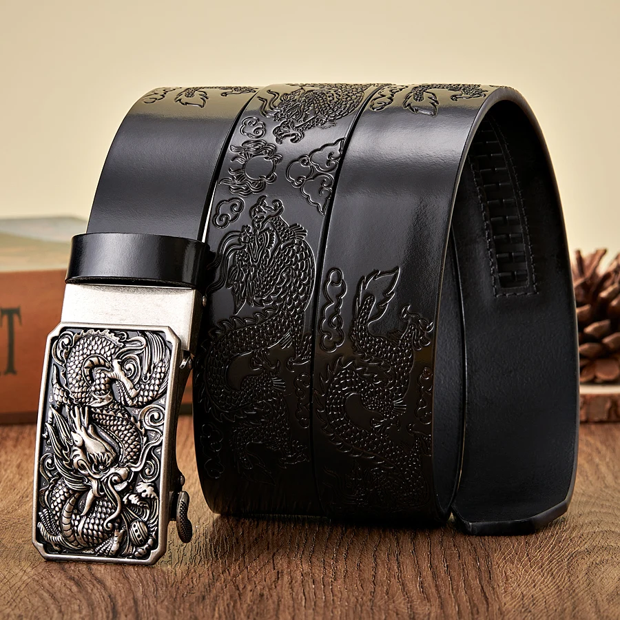 Men’s 3.5CM Leather Belt with Dragon Totem