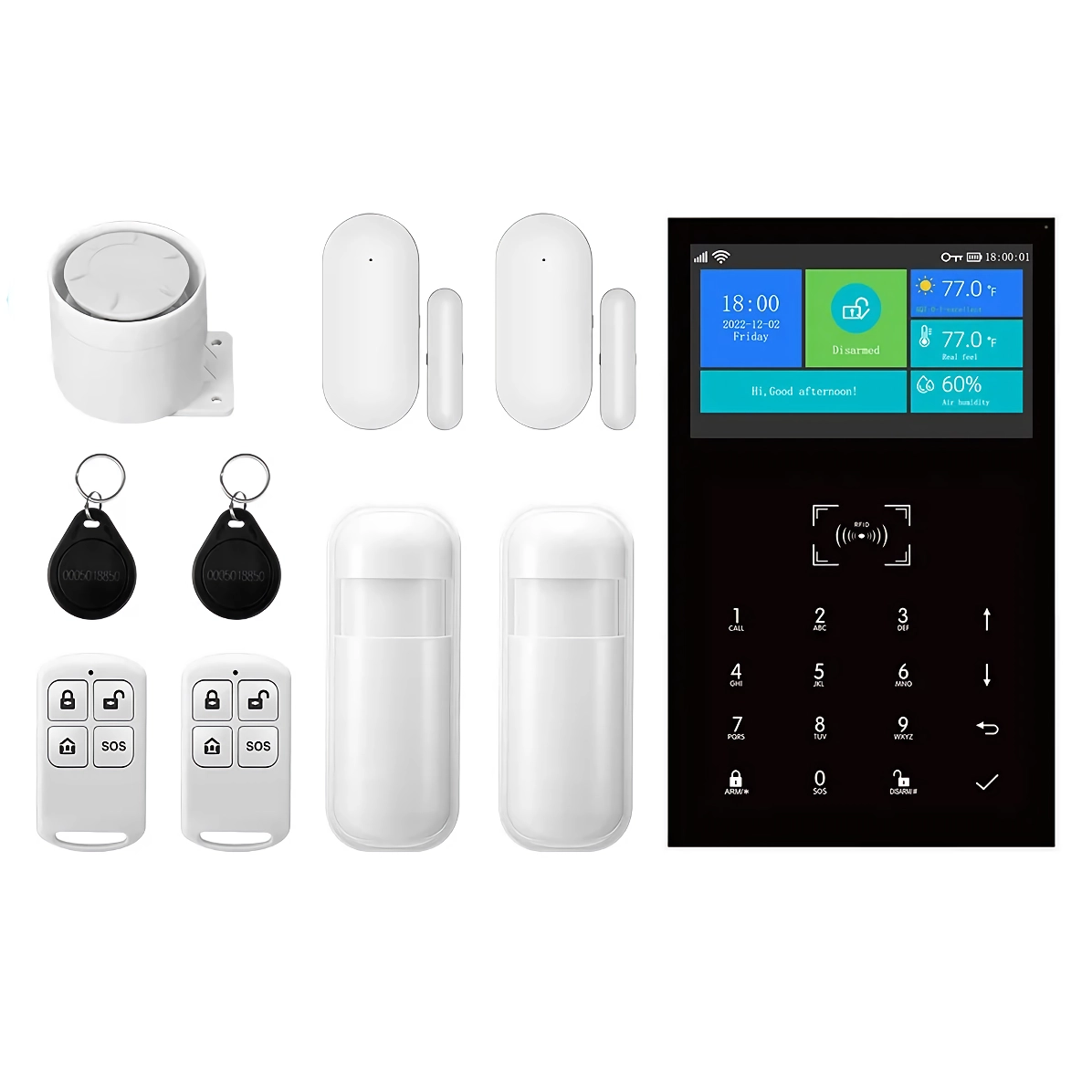 Introducing the Smart Home Alarm System—your ultimate defense against intruders and unexpected emergencies. With a sleek 4.3-inch touch screen and robust security features, this system provides an easy-to-use interface that keeps you in control. Designed to offer peace of mind, this advanced alarm system protects what matters most—your home and your loved ones.