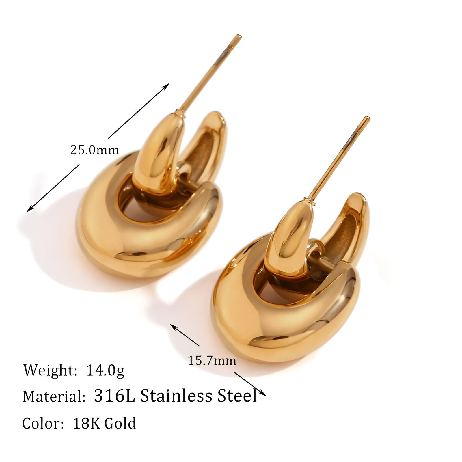 These Spliced C-shaped U-shaped Small Drop Earrings are a perfect blend of elegance and trend. Crafted from high-quality 316L stainless steel and plated with 18K gold, they add a refined touch to any outfit while remaining resistant to daily wear. The unique geometric spliced shape brings a contemporary feel, making these earrings a go-to choice for fashion-forward individuals who appreciate style without compromise.