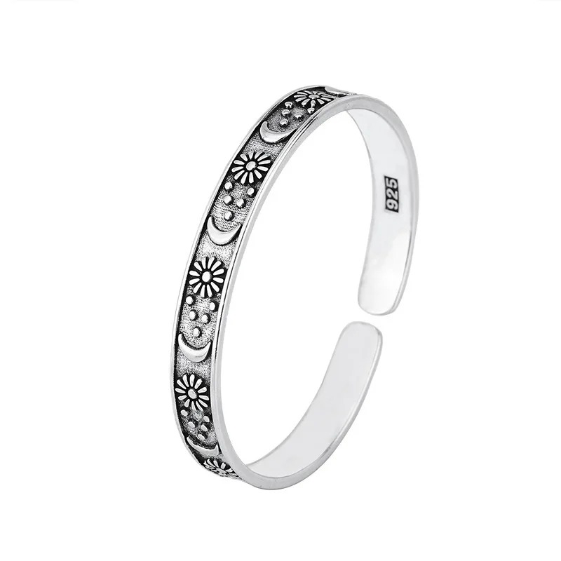 Introducing the Star Moon Flower Open Bracelet, a stunning piece of jewelry that blends medieval charm with modern elegance. This shiny bracelet is designed for the contemporary woman who appreciates unique accessories that make a statement. Perfect for any occasion, this piece will add a touch of celestial beauty to your collection.